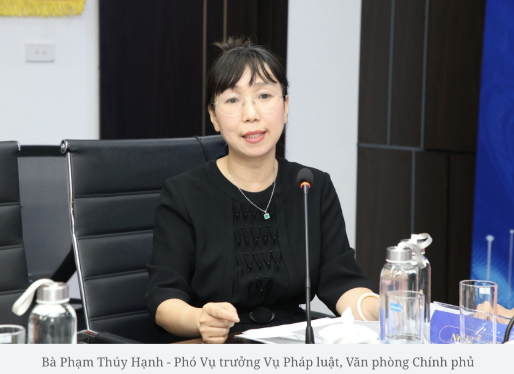 – Bà Phạm Thúy Hạnh – Phó Vụ trưởng Vụ Pháp luật, Văn phòng Chính phủ