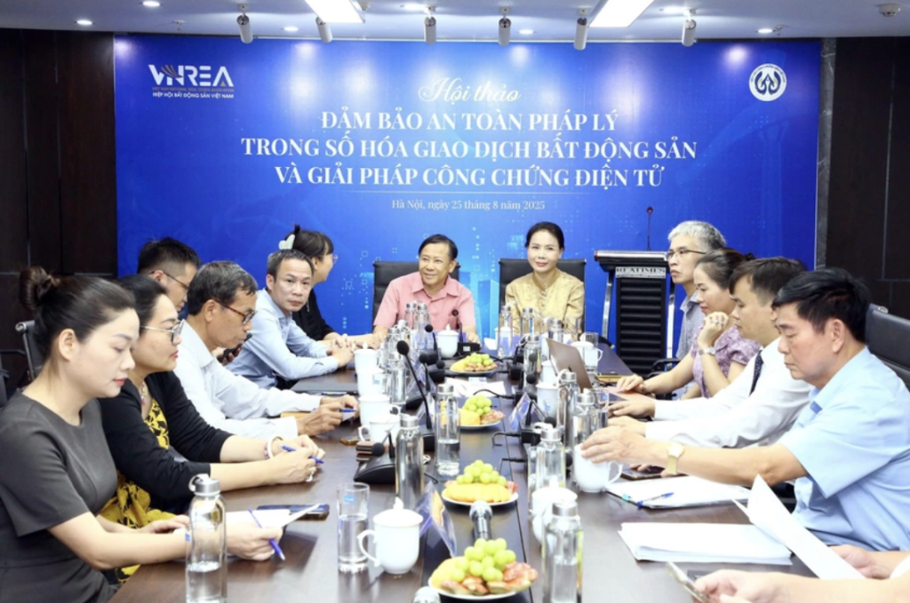 Chiều 25/8, Hiệp hội Bất động sản Việt Nam phối hợp với Hiệp hội Công chứng viên Việt Nam tổ chức Hội thảo chuyên đề: “Bảo đảm an toàn pháp lý trong số hóa giao dịch bất động sản và giải pháp công chứng điện tử”.